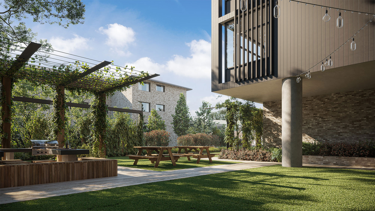 Those who love great gardens and being outside will love the outdoor spaces at IQ Burwood. Lose yourself and find complete calm as you walk past climbing vines and lush green walls.